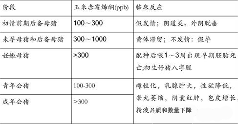 表2 豬玉米赤霉烯酮中毒的臨床反應(yīng)