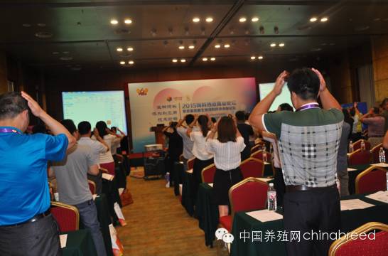 生物飼料添加劑應(yīng)用技術(shù)論壇開始前科為博員工帶領(lǐng)大家做拍拍操