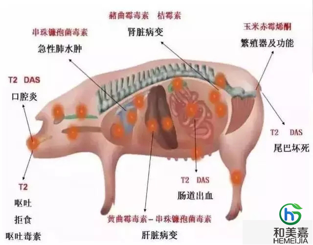 霉菌毒素能夠影響豬的生產(chǎn)性能、繁殖性能、干擾和抑制豬的免疫系統(tǒng)、導(dǎo)致豬癌變死亡,同時(shí)還會(huì)在豬體內(nèi)殘留。