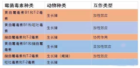 5、協(xié)同性:由于農(nóng)作物可能被幾種真菌共同污染,因此,飼料中可能同時存在幾種霉菌毒素。