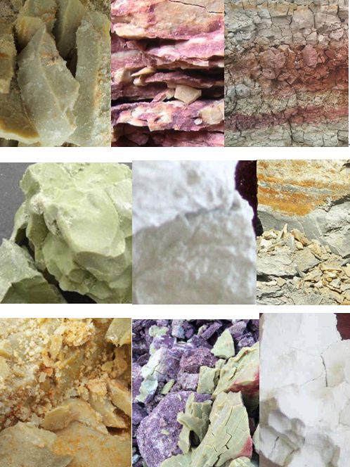 除上述原因,蒙脫石原礦由于晶格結(jié)構(gòu)中鐵離子、鈣離子、錳離子、鈉離子等的含量變化而會呈現(xiàn)各種顏色。由于礦層的逐級改變,其外觀顏色也會發(fā)生相應(yīng)的改變。