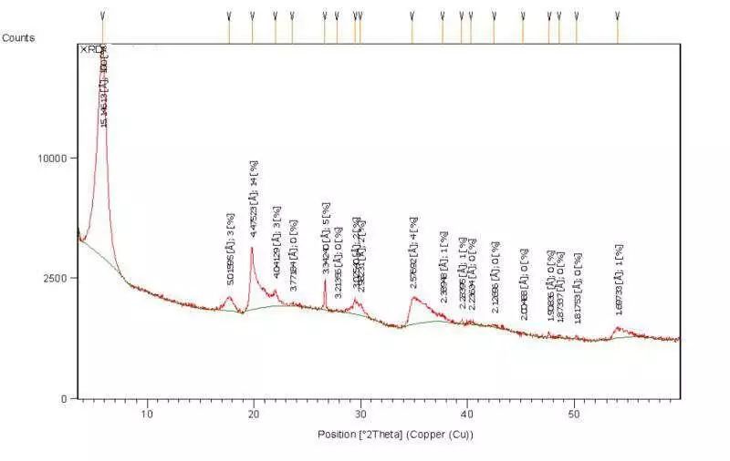 高純度蒙脫石XRD譜圖,結(jié)論:各種顏色的膨潤土都可以提純出高純蒙脫石。