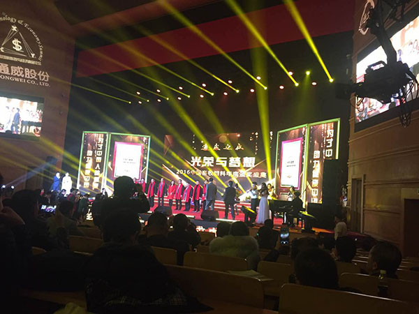 晚上,是通威之夜——光榮與夢想2016中國畜牧飼料年度頒獎(jiǎng)盛典,組委會(huì)分別設(shè)置了中國畜牧飼料行業(yè)年度十大經(jīng)濟(jì)人物、中國畜牧飼料十大科技產(chǎn)業(yè)化進(jìn)步獎(jiǎng)、中國畜牧飼料十佳科技創(chuàng)新獎(jiǎng),并準(zhǔn)備了豐富多彩的節(jié)目表演,在頒獎(jiǎng)的同時(shí)給現(xiàn)場嘉賓帶來了一份喜悅與感動(dòng)。