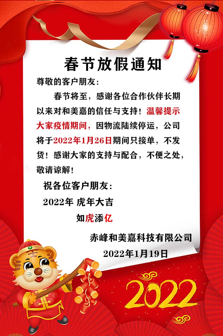 和美嘉-春節(jié)放假通知、祝大家虎年大吉!